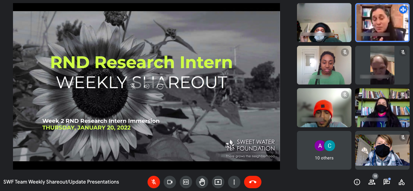The entire Sweet Water Foundation team is grateful for the commitment of the RND Research Interns and team as we continue working through the spring semester to show the unbounded possibilities of Regenerative Neighborhood Development.