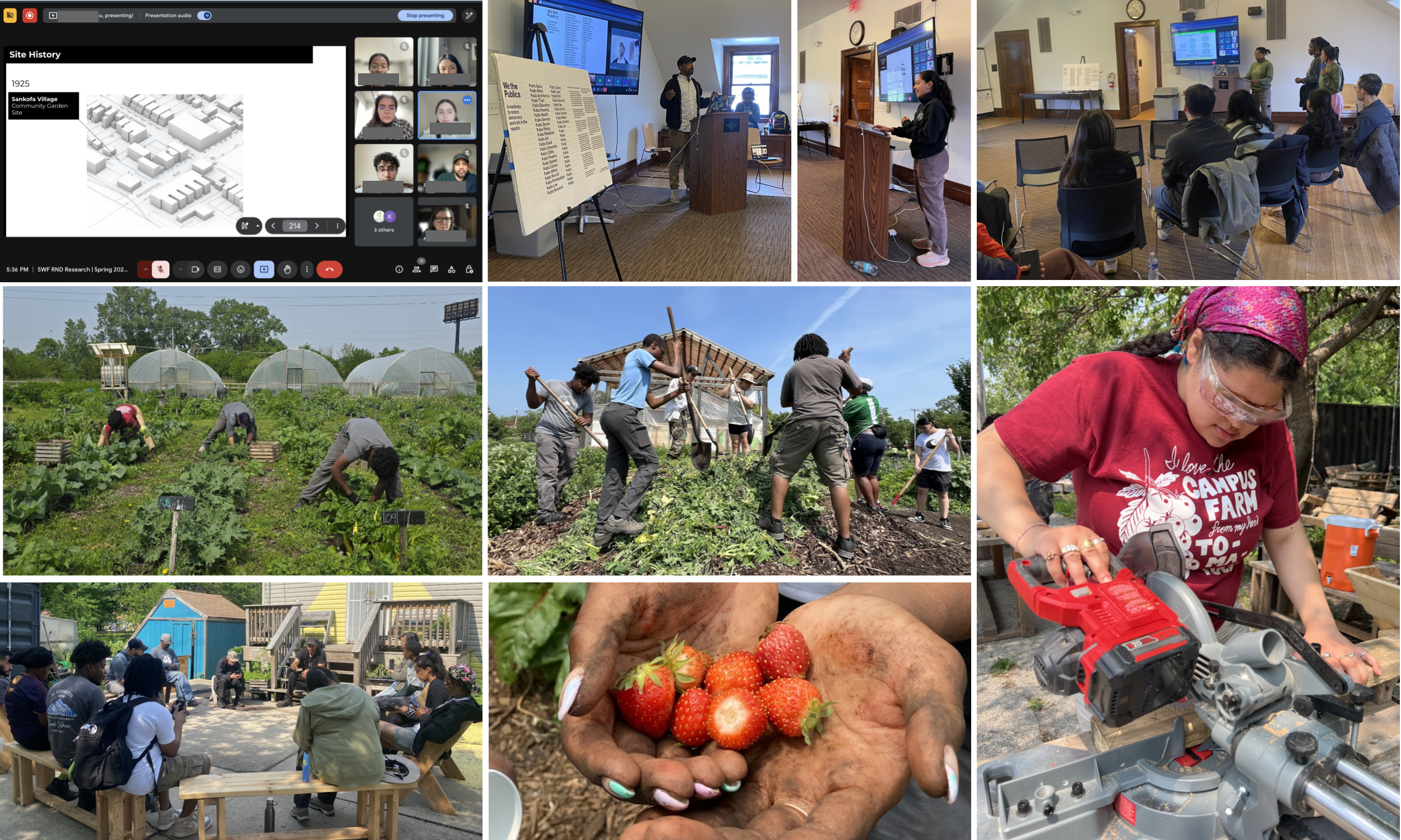 The Spring 2025 RND Re-Search internship focused on Policy in Action, translating re-search methodologies from SWF’s We the Publics… and Re-Mapping the Publics exhibits to SWF’s Values-Based Partner, Sankofa Village Project, rooted in the Homewood neighborhood of Pittsburgh, Pennsylvania. Interns identified parallels between SWF and Sankofa Village through research on their historical context, scale, and shared strategies for community regeneration and used their findings and analysis to translate real-life solutions from SWF’s Portfolio of Possibilities to Sankofa Village.