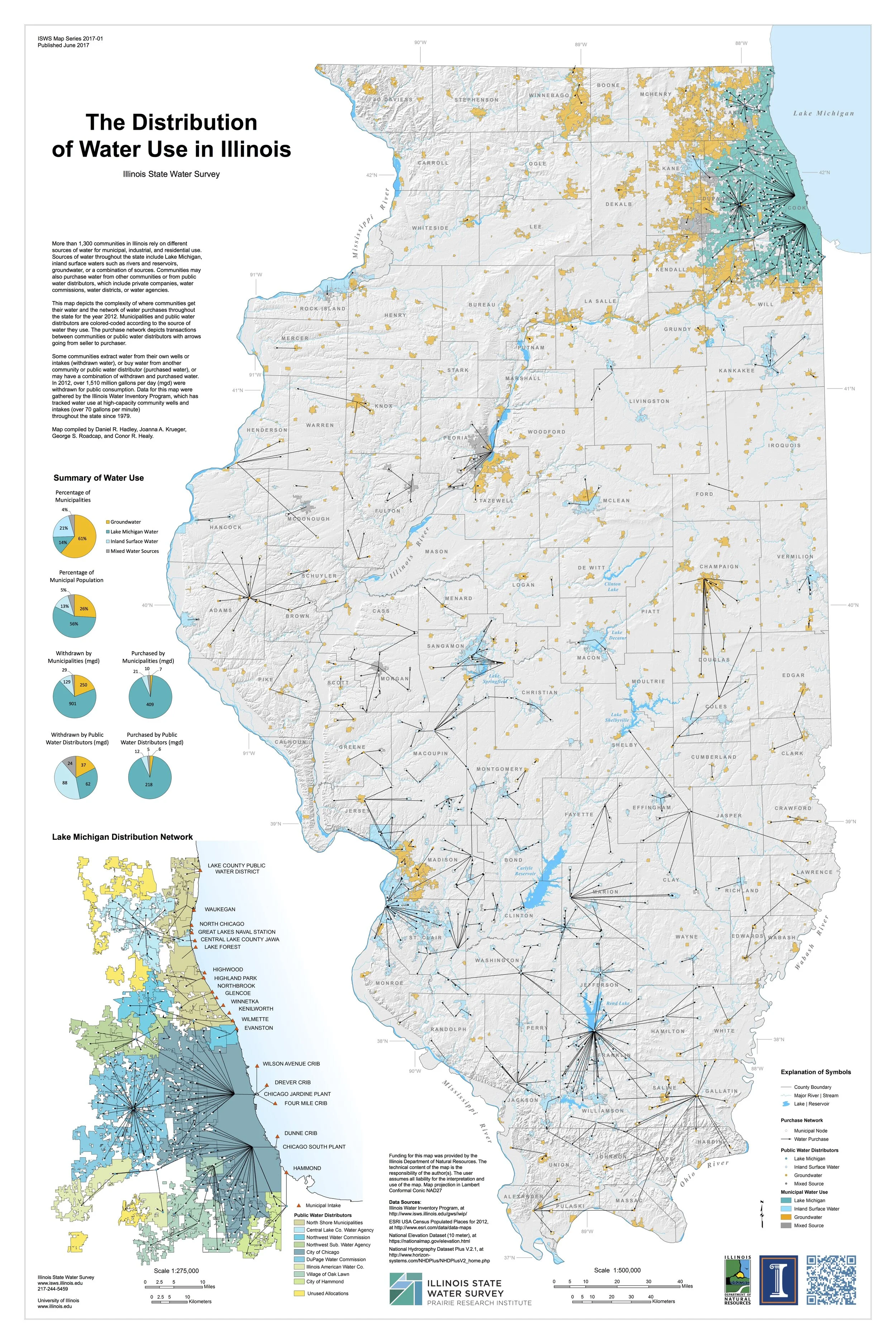 The Illinois State Water Survey conducts state-of-the-art research and collects, analyzes, archives, and disseminates data and technical information, including detailed water maps.