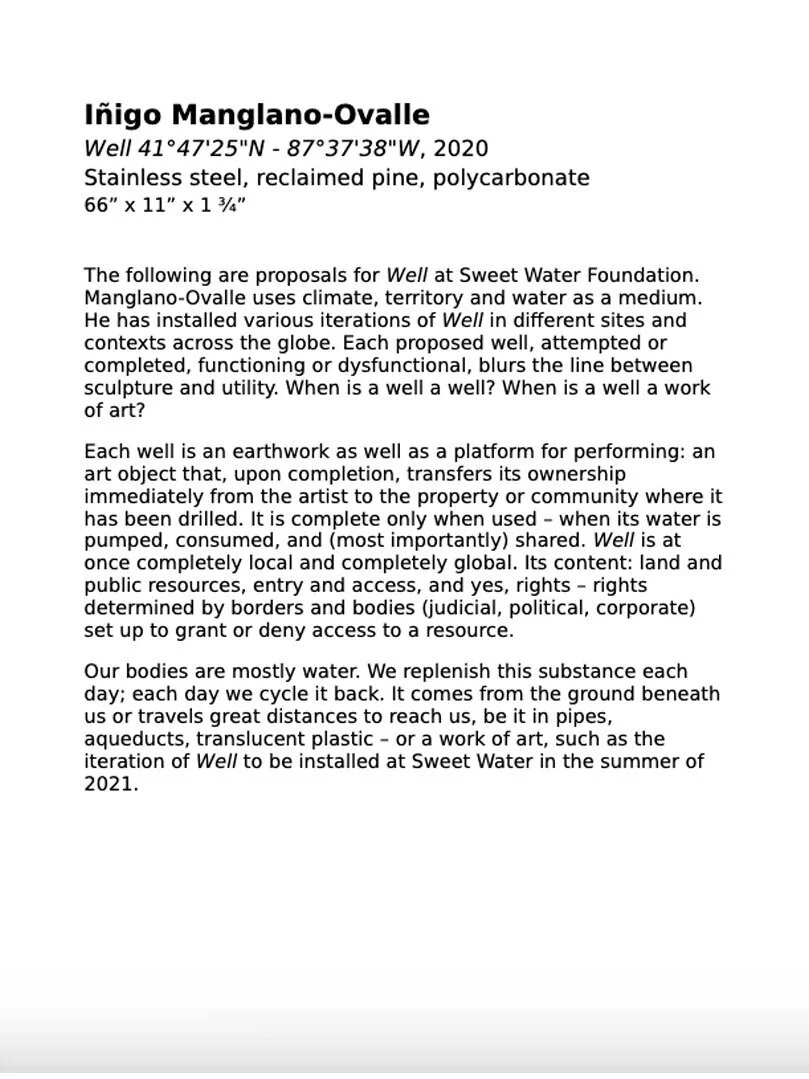 Quadrant 3 | Well, learn more about Iñigo Manglano-Ovalle’s Well projects, pumps, and wells.